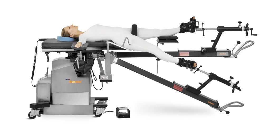 In a marvel of modern allopathic medicine and medical technology, they mounted me on a human-sized “spit” that allowed them to manipulate the leg and thigh bone as they cut off the old damaged top, added and aligned new titanium, glass, and polyurethane components, and then stitched me back together. The whole procedure took about an hour from lights out to when I began chattering and asking questions in the theatre after they were done. No anaesthesia. A spinal block, and none of the druggy after-effects. Here is a picture of the spit on which they “roasted” me: